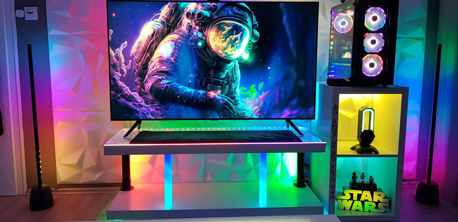 Hãy tưởng tượng vào một buổi chiều cuối tuần, bạn cùng gia đình vừa “chill” trong nền nhạc, vừa xem một bộ phim gia đình trong ánh sáng phòng tối với ánh sáng lung linh, khá là cảm xúc đấy!