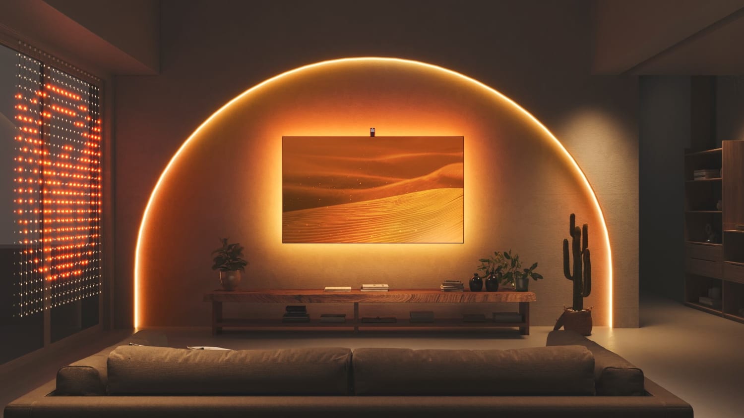 Thông qua tính năng kết hợp màu tùy chỉnh, người dùng có thể chọn hiệu ứng ánh sáng Dune để nâng cao trải nghiệm trong nhà theo chủ đề phim với màu sắc phù hợp với nội dung trên màn hình để giúp biến ngôi nhà của họ thành thế giới Arrakis.