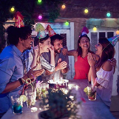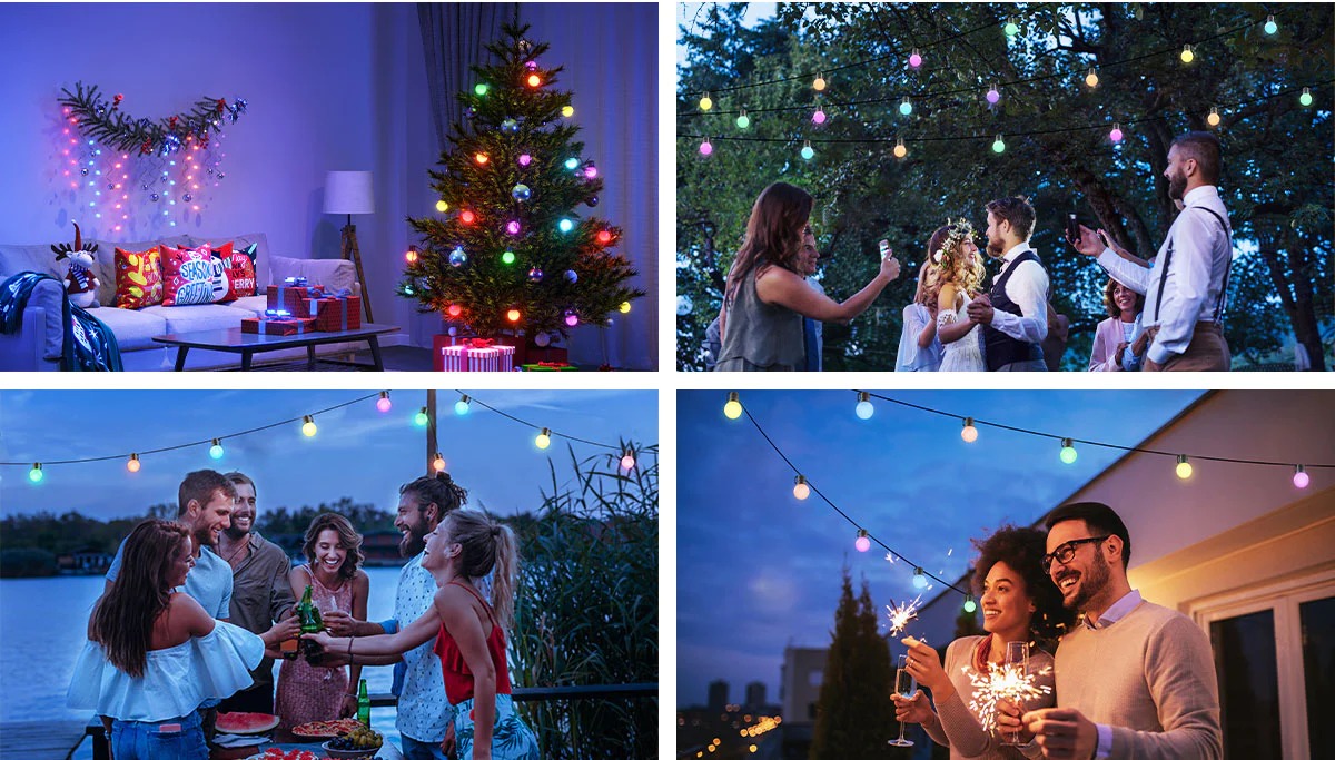Mang lại sự phấn khích cho sân sau và hiên nhà với những đèn dây ngoài trời. Những bóng đèn này có khả năng chống vỡ, chống thấm nước IP65 và tuổi thọ cao hơn bất kì bóng đèn ngoài trời khác. Sử dụng Ứng dụng Govee Home để thay đổi màu sắc, chế độ ánh sáng và khiến đèn đồng bộ hóa theo nhạc.