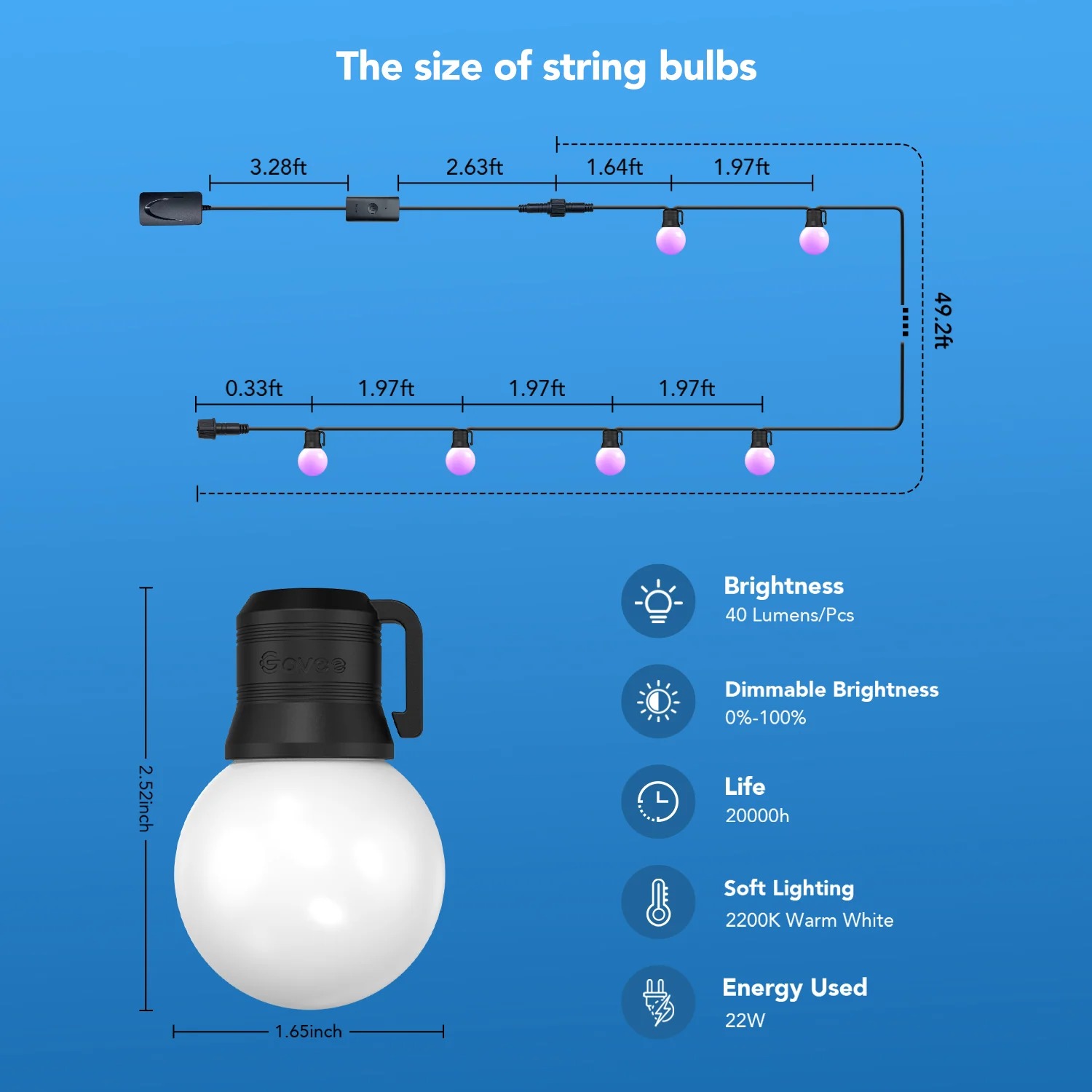 Govee G40 LED Smart Bulb String Lights