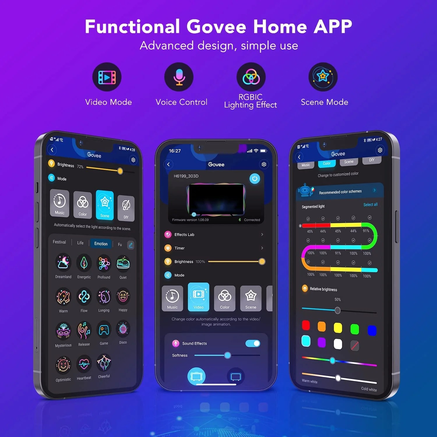 Và đã đến lúc bạn đắm chìm trong bài hát yêu thích không những với âm thanh mà còn với màu sắc nhờ hệ thống ánh sáng dùng cho H6199 Govee Immersion Wi-Fi TV Backlights. Đồng bộ âm thanh cùng với ánh sáng sống động sẽ khiến bạn có cảm giác như trong phòng thu chuyên nghiệp nơi bạn có thể đắm chìm và “phiêu” hết cỡ.