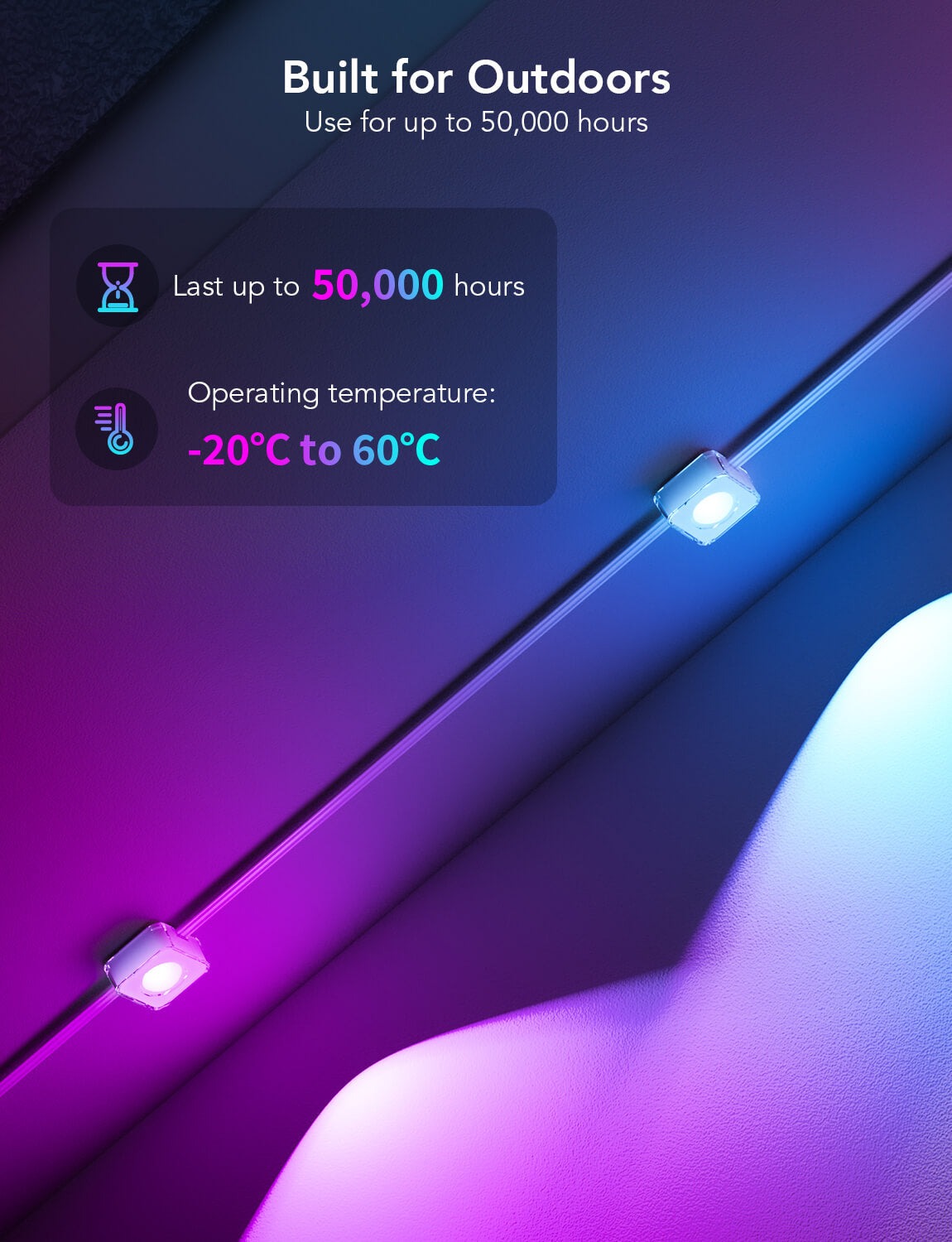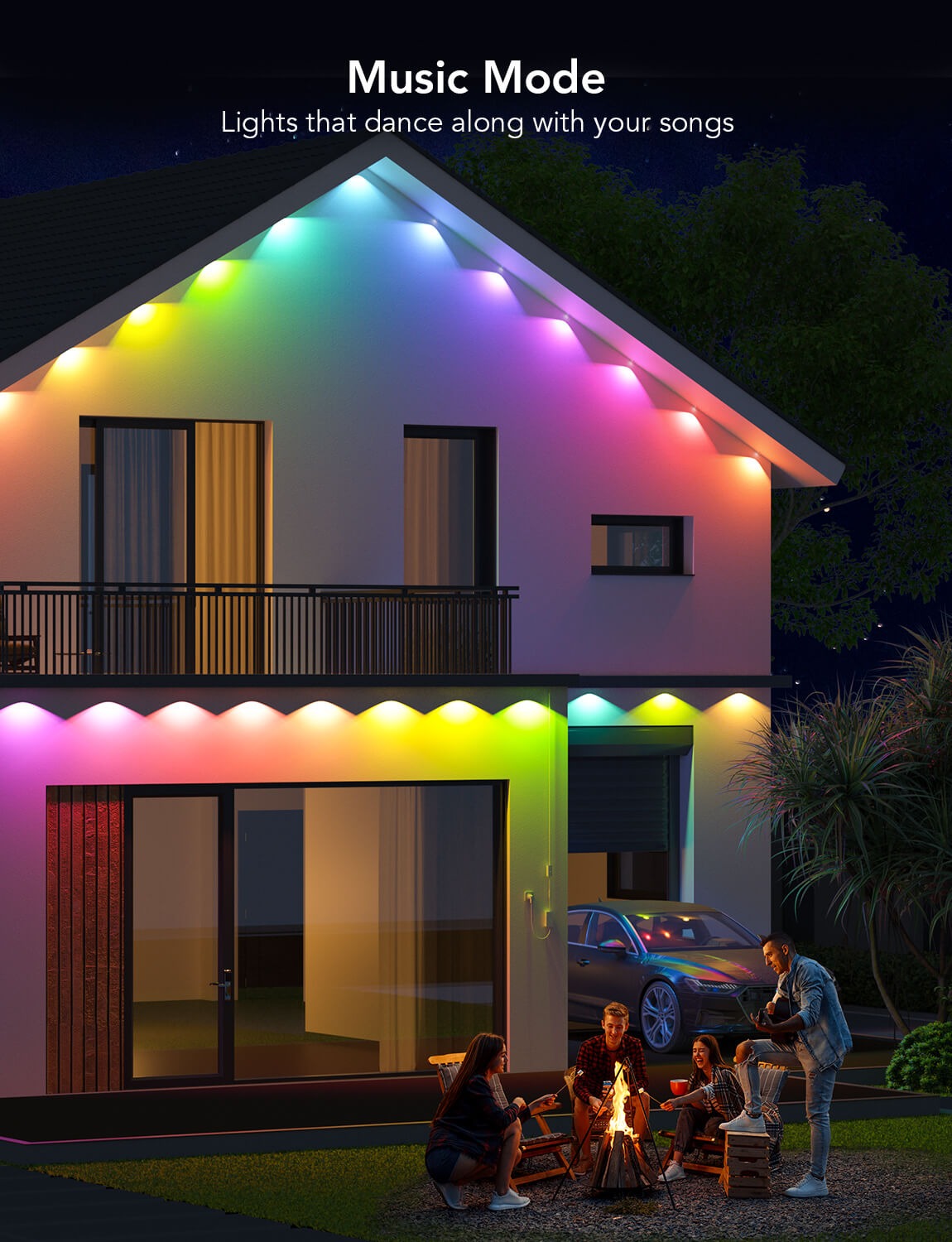 Tô điểm cho ngôi nhà với Govee RGBIC LED Permanent Outdoor Lights. Lắp đặt trên mái hiên, hàng rào hoặc hành lang để tạo ánh sáng hấp dẫn trực quan.