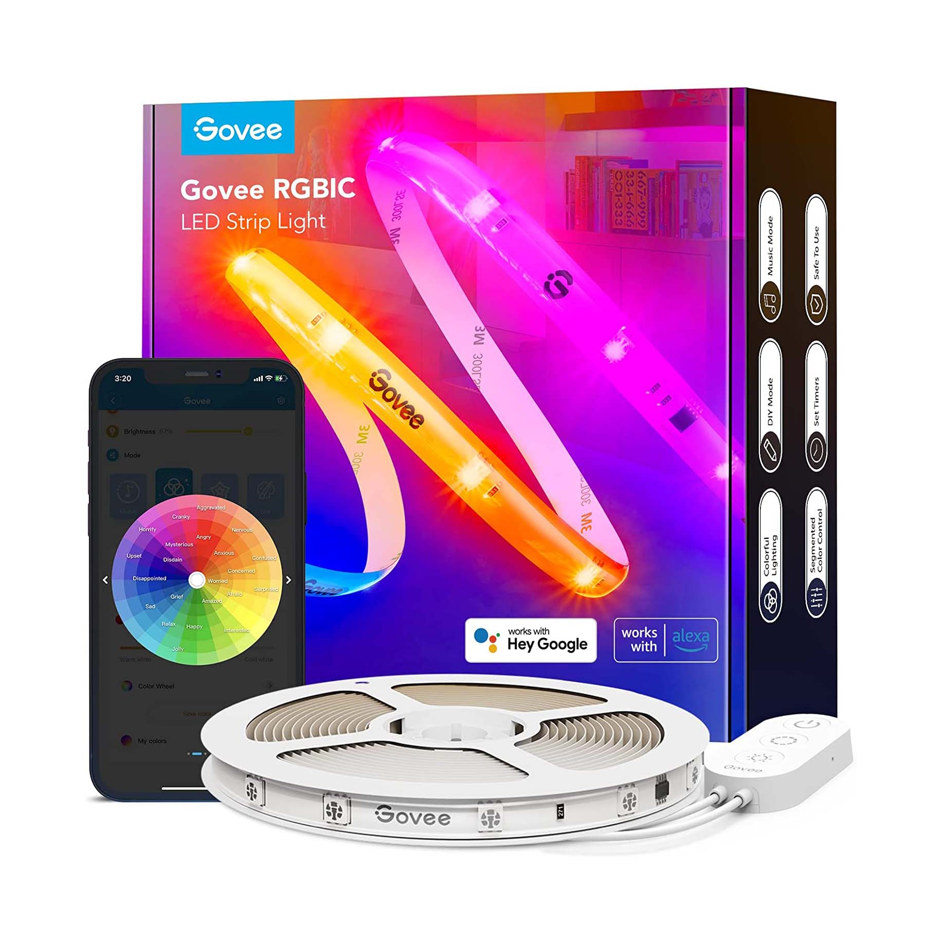 Công nghệ RGBIC cải tiến cho phép bạn điều chỉnh từng phân đoạn riêng lẻ. Bạn có thể kiểm soát độ sáng, chế độ âm nhạc, màu sắc và hiệu ứng bằng ứng dụng Govee Home.