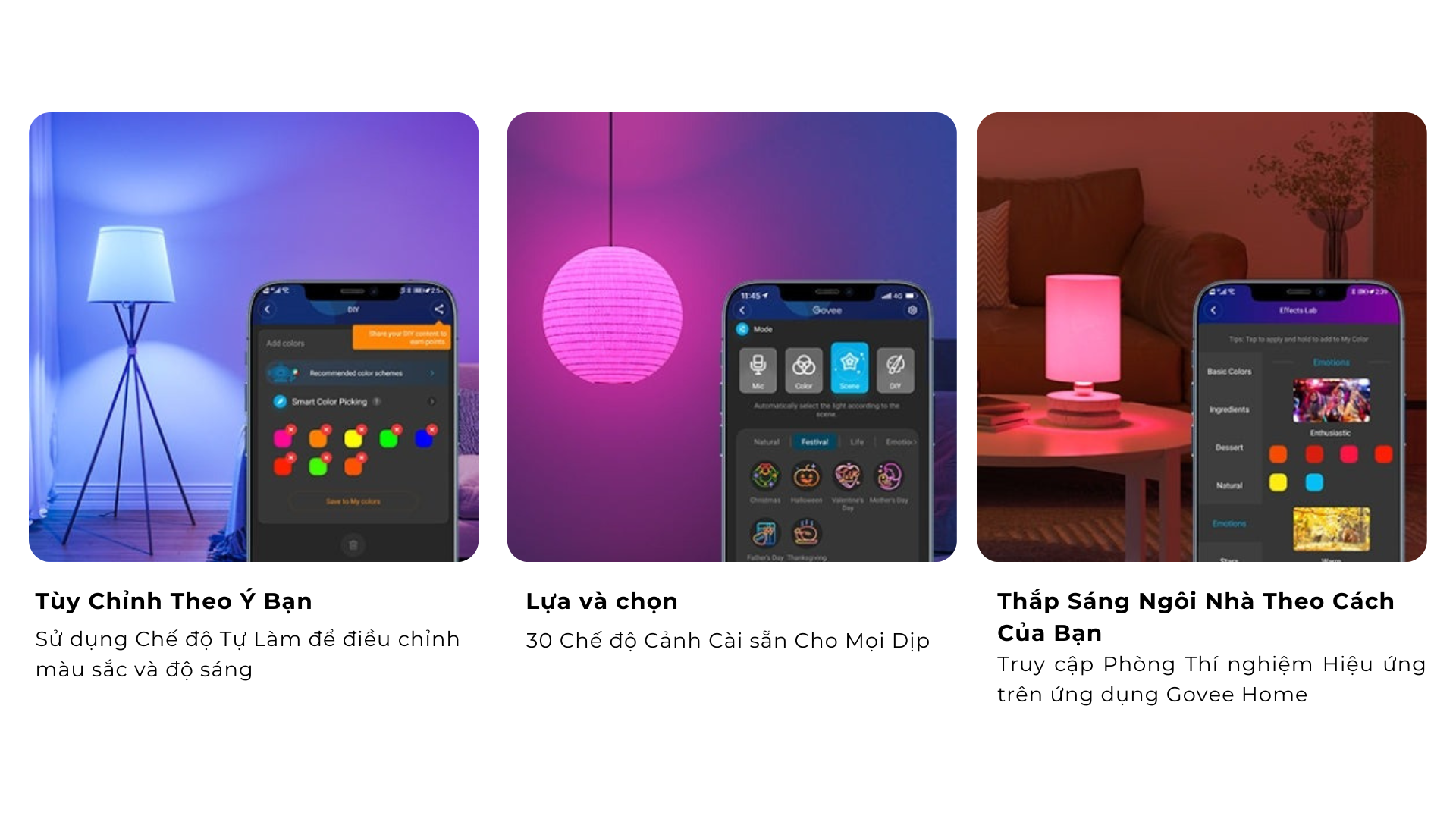 Tùy chỉnh ánh sáng của bạn với các điều chỉnh độ sáng và lựa chọn hơn 16 triệu màu. Bạn cũng có thể chọn từ nhiều loại trắng ấm và lạnh để tạo ra ánh sáng tự nhiên hơn cho bữa tiệc ăn tối, chụp ảnh, học tập và nhiều hơn nữa