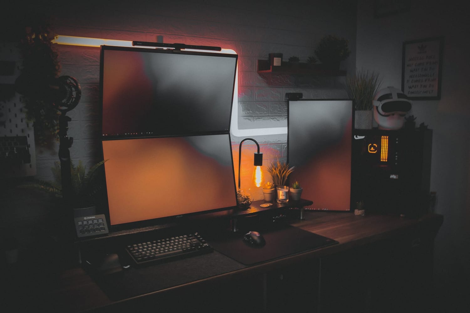 - Tạo điểm nhấn: Khi set up phòng game phong cách monochrome, bạn cần chú ý đến sự cân bằng trong tổng thể không gian. Bạn không nên sử dụng quá nhiều chi tiết rườm rà, rối mắt. Nhưng để phòng game không trở nên nhàm chán, bạn nên sử dụng các vật dụng trang trí có màu sắc nổi bật để tạo điểm nhấn cho căn phòng gaming của mình. Các vật dụng trang trí này có thể là tranh ảnh, đèn led,…